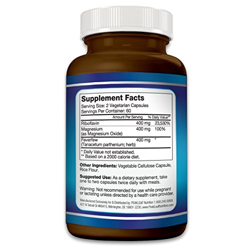 -. Feature : ✔ 100% MORE THAN OTHER BRANDS, 120 CAPSULES - 2 MONTH SUPPLY - You get the benefit of DOUBLE the capsules thanks to our ability to buy ingredients in bulk. Receive 2 months supply of our premium Migra-Ease formula. You won't find a similar quality product at the same P.R.Ice - MARKET LEADING VALUE! / ✔ POWERFUL NEUROLOGICAL SUPPORT - Stop acute head pain with Migra-Ease, with it's muscle-relaxing and pain-relieving effects. Backed by 25 years of research. / ✔ CLINICAL EXTRACTS - Combines powerful herbs and minerals in a potent formula with clinically-researched herbal ingredients like Feverfew Extract, Magnesium Oxide, and Riboflavin, which have been shown to support headache sufferers and fight auras, dizziness, tension and nausea.. / ✔ PURE AND MADE IN USA - Vegetarian easy-to-swallow capsules, pure formula free of fillers, binders, and artificial ingredients. No gluten, wheat, or dairy. Just a pure and safe product. / ✔ 100% MONEY BACK GUARANTEE - Each order is back by our 90-day guarantee, the highest in this industry.