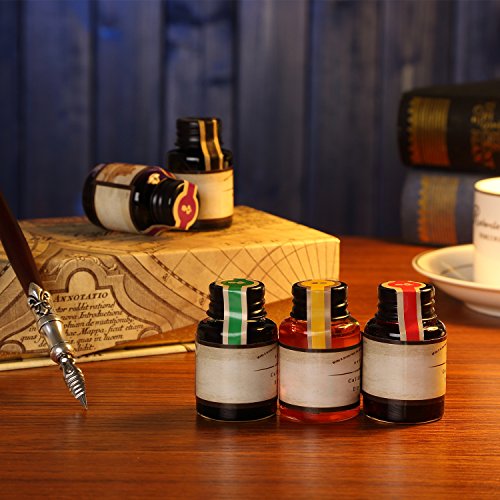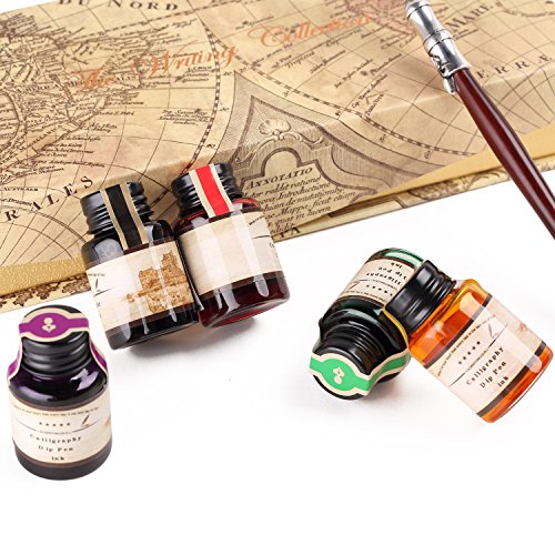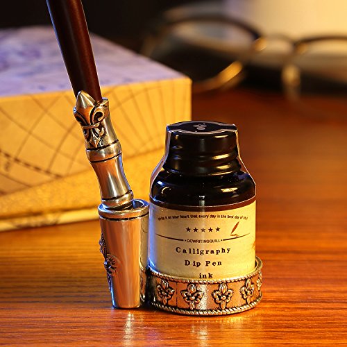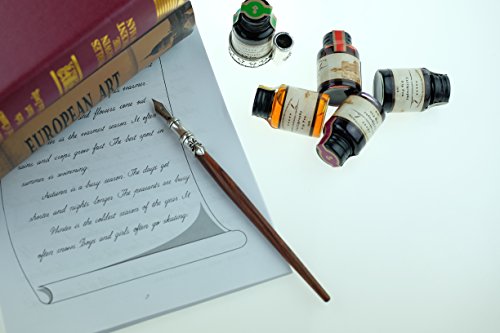 -. Feature : HAND CRAFTED:The GC QUILL artist grade Calligraphy® Pen Set is produced in our manufacturing facility working in partnership with some of the finest pen and ink making families, pioneering new writing tools and state-of-the-art technologies, all of our pens are hand crafted, but always respecting the tradition of expertly crafted products and design. Perfect for All Artists, Illustrators, Writers, Students, Teachers, and Technical Professionals. Ideal for Drawing ,Writing, Bible Study. / 5 BOTTLE INK/NIBS:GC calligraphy dip pen set comes in an elegant case complete with a comprehensive range of nib sizes and ink colors for use on all media. writing instruments are individually made by hand with luxury birch wood, Our Dip pens fell smooth, and the The color pattern looks very high grade.stainless steel nibs tipped with iridium alloy to protect from wear, fashioned by skilled pen makers who can take up to 10 years to master their craft. / MANIZATION DESIGN:This traditional set blends a centuries-old art form with your unique 'hand' for a creation conveyed in thought and design. GC dip pens provide superior control and stability delivering smoothness and an easy ink flow. The pen design allows fool-proof writing helping you hit that sweet spot with ease. The long well-balanced pen body provides a comfortable writing experience. 6reservoir nibs allows for easy cleaning. As our brand says "PENS, WE ARE SERIOUS" / SAFE&GREEN:Our laboratory ink formulation is made without animal by-products or dispersing agents, providing safe vibrant non-toxic soluble dyes and pigments suspended in acrylic shellac, enabling optimal flow to give color brilliance with durable lightfastness that will not deteriorate or fade. The pen set comes with 6 nibs that can be used . They dispense ink smoothly delivering amazing flexibility for a wide range of line variation. / BEST LIFETIME GUARANTEE: If, For Whatever Reason, You Don't Absolutely Love Your Calligraphy Dip Pen, Just Return It, And We'll Refund Every Penny (Or Replace It, If There Is A Problem)