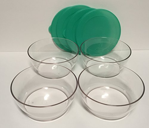 -. Feature : Tupperware Acrylic Small 1 1/4 Cup/ 290mL Clear Bowl Set - Set of 4 Bowls - Green Lids / 4 1/2" diameter