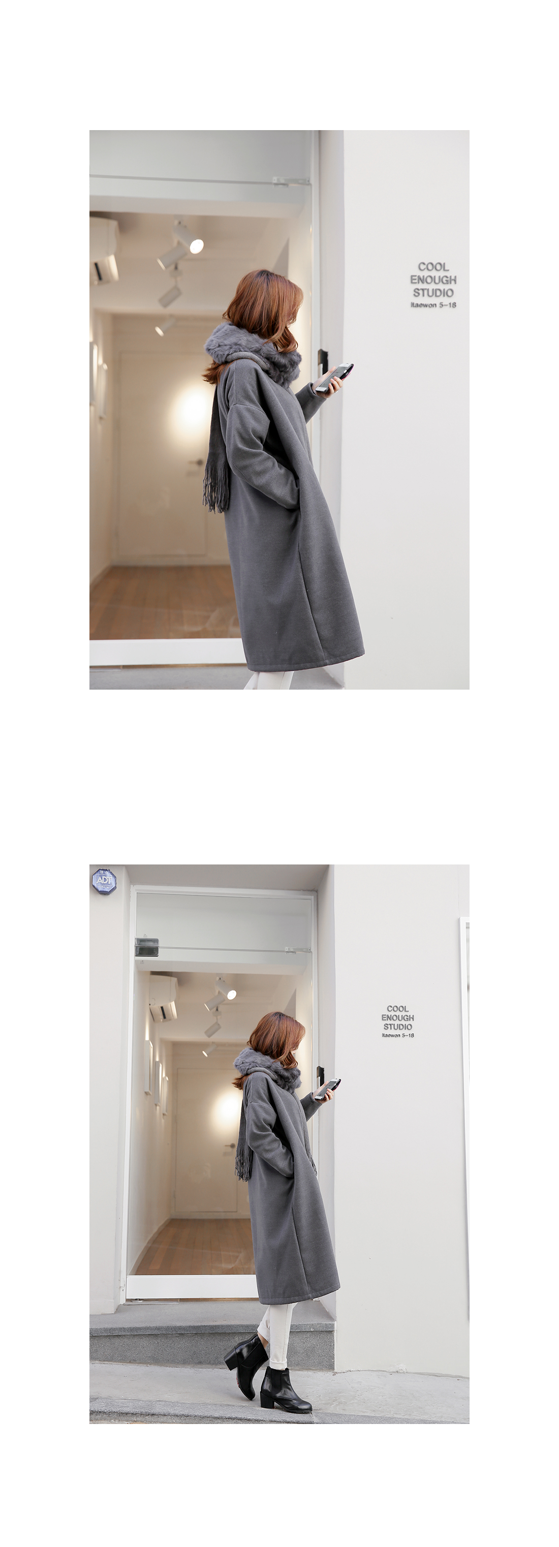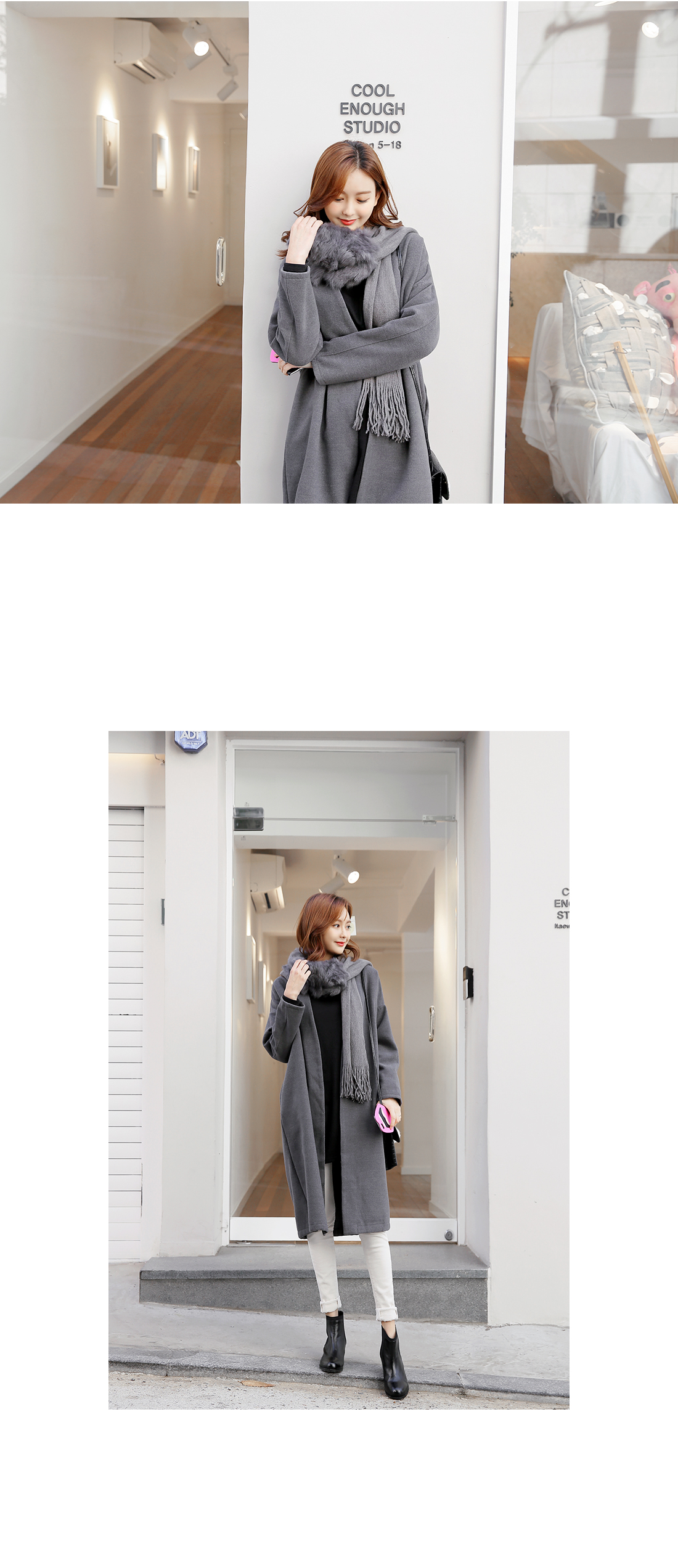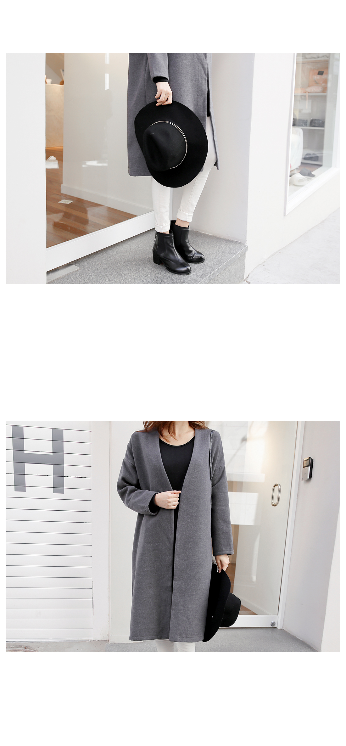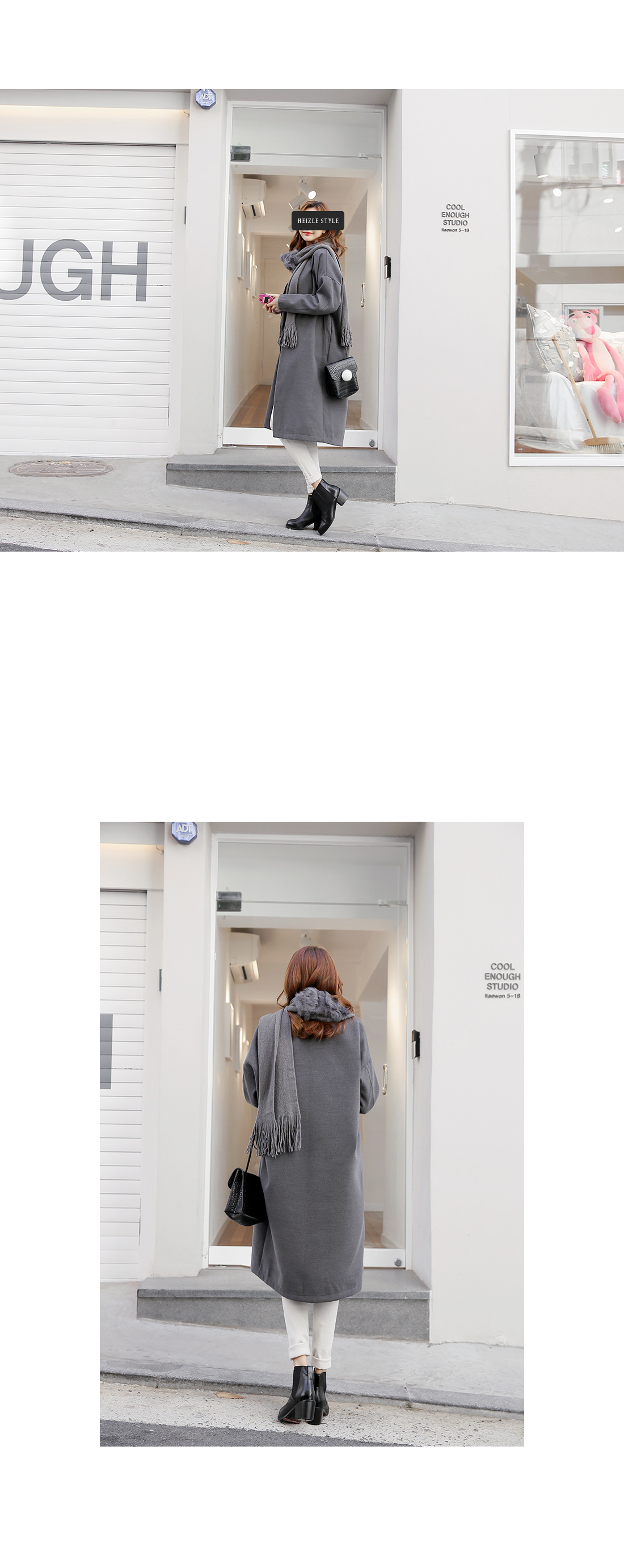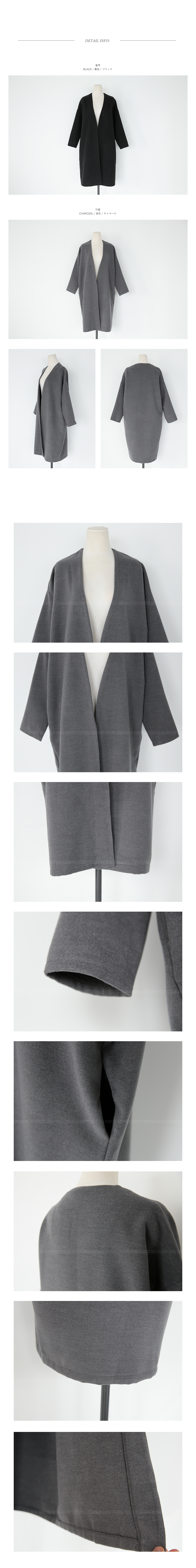 심플한 라인의 루즈핏코트에요!군더더기없는 라인의 노카라 디자인과오픈클로징없이 걸치는 스타일로다양한 룩에 심플함을 더해 주구요,루즈핏으로 착용감이 편안해요~양 옆라인에는 리얼 포켓으로실용성까지 겸비한 아이템이구요,컬러감까지 베이직하게 구성되어한층 더 데일리하게 즐기기 좋아요^^유행없이 다양하게 연출하기 좋은기본 코트로 추천해 드려요!