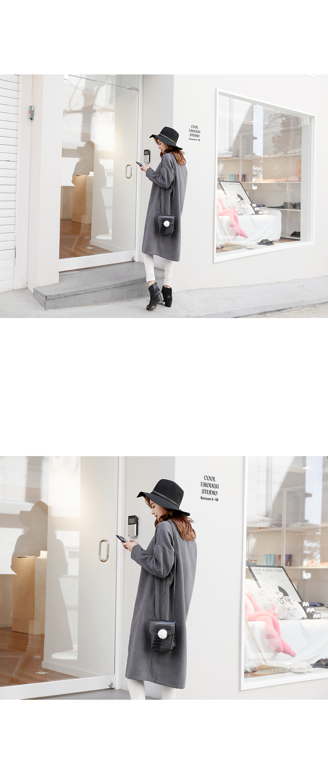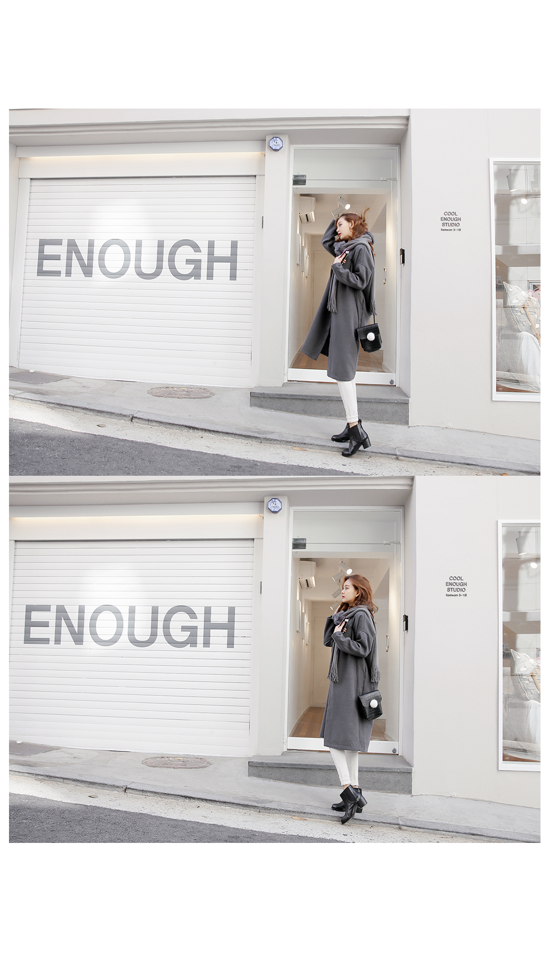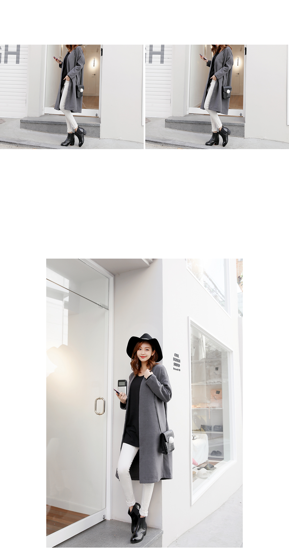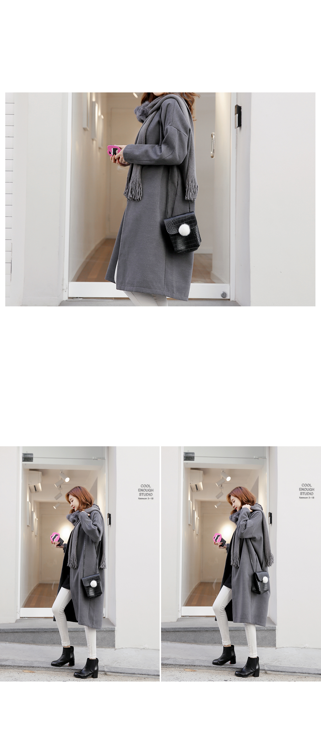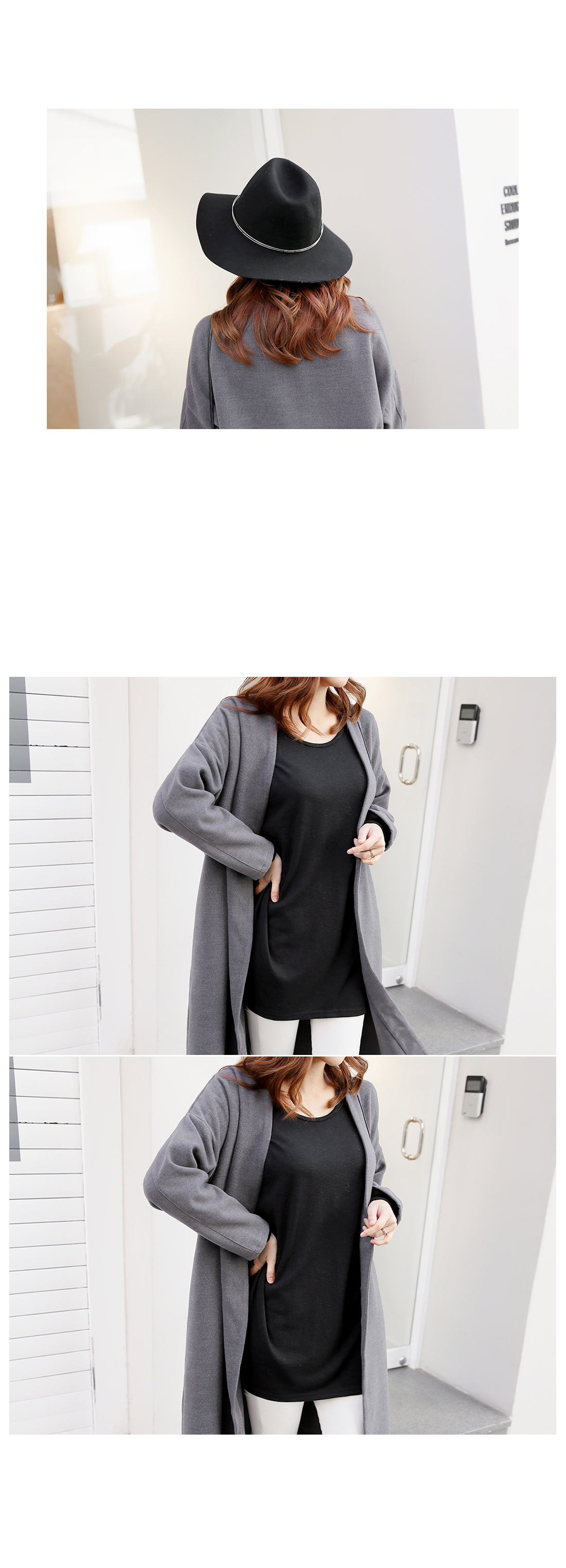 심플한 라인의 루즈핏코트에요!군더더기없는 라인의 노카라 디자인과오픈클로징없이 걸치는 스타일로다양한 룩에 심플함을 더해 주구요,루즈핏으로 착용감이 편안해요~양 옆라인에는 리얼 포켓으로실용성까지 겸비한 아이템이구요,컬러감까지 베이직하게 구성되어한층 더 데일리하게 즐기기 좋아요^^유행없이 다양하게 연출하기 좋은기본 코트로 추천해 드려요!