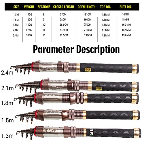-. Binding : Misc. -. Brand : YONGZHI -. Feature : Hard and Durable--The telescopic fishing rod is made from carbon fiber mixed with fiberglass ,hard and durable. / Convenient-The pocket fishing rod is so short when pull back and so long when pull out.Easy to carry and put in the backpack. / Strong-Anti-saltwater corrosion steel hooded reel seats,and reel seat locks your reel on tight. / Smooth-Stainless steel guides with ceramic inserts help in securing longer casts and reduces the friction in the line. / Best suitable for sea fishing,stream fishing and river fishing. An ideal gift for fishing enthusiasts or collectors. -. IsAutographed : 0 -. IsMemorabilia : 0 -. Label : YONGZHI -. Manufacturer : YONGZHI -. ProductGroup : Sports -. ProductTypeName : SPORTING_GOODS -. Publisher : YONGZHI -. Studio : YONGZHI -. Title : Pocket Fishing Rod Metal Reel Seat Super Hard Portable Telescopic Fishing Pole for Boat Travel Freshwater Fishing