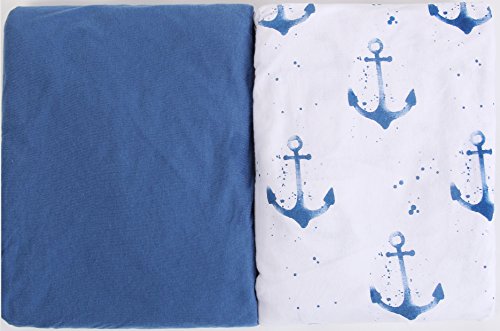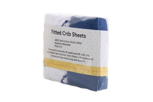 Crib Sheet Set by Upstreet: 100% Cotton Value Jersey Knit Fitted Portable Baby Crib Sheet, Boy, Blue, 2 Count