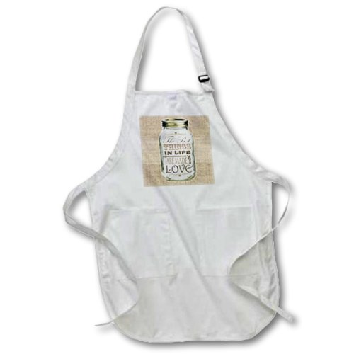 3dRose apr_128507_4 Mason Jar, Burlap Print Brown The Best Things In Life Are Made with Love Full Length Apron with Pockets, 22 by 30-Inch, Black