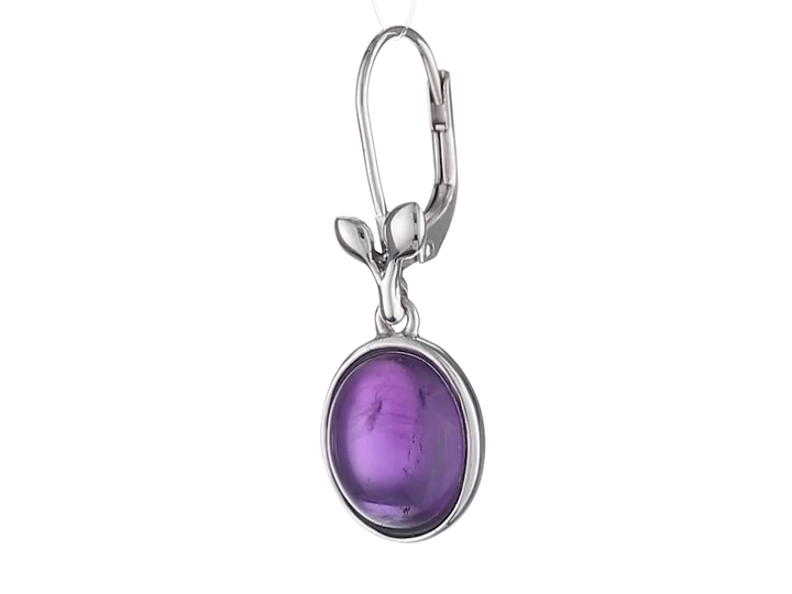 Sterling Silver and Oval Gemstone Leaf Earrings