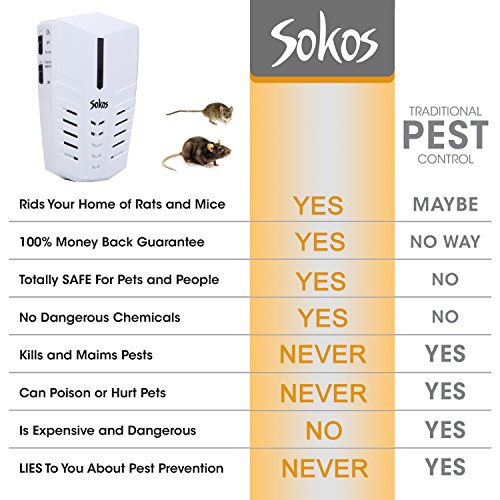 Eliminate Pests: The Pest Repeller protect your home. No more droppings in your Kitchen, messy traps in your Garage, Basement, Office. Works for Rats, Mice, Ants, Roaches, Spiders, Bugs, and much more.