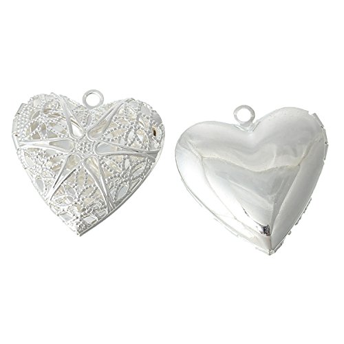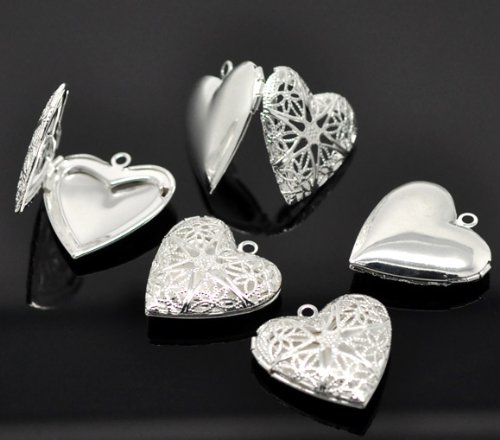Housweety 10pcs Silver Plated Heart Shape Photo Frame Locket Pendants 26x26mm