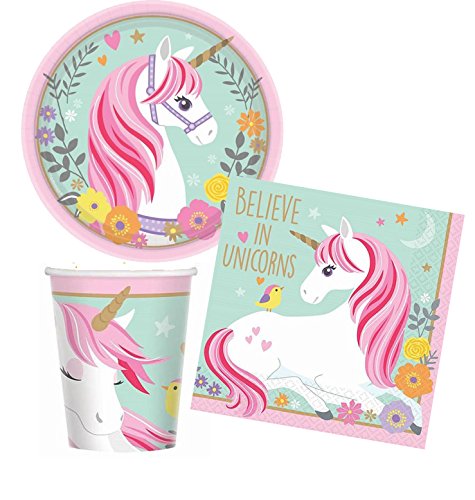 Believe In Unicorns Girl's Birthday Party Tableware Supplies Bundle - Plates Cups Napkins