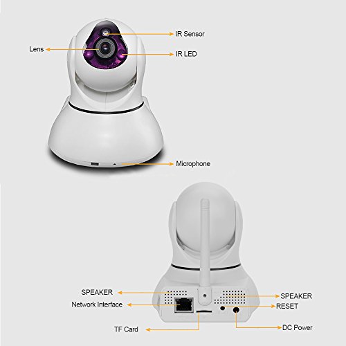 -. Feature : SIMPLE AND QUICK CONFIGURATION: Sonic Recognition technology featuring One Key WiFi configuration makes setup so quick and easy. Just plug in the power cable, download the app Yoosee( Google play or Apple store ) and set it up via your iPhone or Andriod smartphone,then with this camera, due to its Sound Wave Smart Connect, you only start and stop recording with your cell phone as long as you have a stable mobile network (Set In) Setting Interface) / MINI ROBOT CAMERA: Stunning Full HD 1080P Video at 30fps. Remarkable Field of View with Super Wide 120 degree Viewing Angle, Remote Pan/Tilt create a complete 355° coverage, Intelligent Digital Zoom. Supports remote viewing & recording from anywhere on desktop computers, go to http://yoosee.co and download the software client CMS (PC clients for Windows), install it to your Windows PC / MOTION DETECTION: Motion Detection with email or push alert notifications based on motion sensing technology. Motion detection sensibility can be adjusted by itself. When the camera detected abnormity or alarm is triggered, instant alarm pictures will be sent via email/FTP / SMART ALARM CAMERA FOR NOTIFICATION AND TWO-WAY AUDIO: Receive messages sent by the wireless network camera from your phone! With the help of smart camera, every potential risk will be identified accurately and sent to you immediately. Motion detection camera technology allows you to avoid taping hours of inactivity. Based on two-way audio, you are able to talk with your families, friends and colleagues anywhere anytime trough this security camera / PAN AND TILT: Remarkable Field of View with Super Wide 90 degree Viewing Angle, Remote Pan/Tilt, Intelligent Digital Zoom, and IR LED Night Vision Up to 32 feet