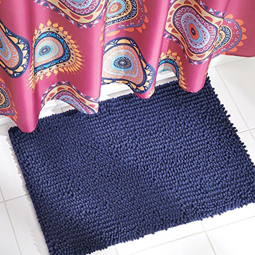 InterDesign Frizz Microfiber Bathroom Shower Accent Rug - 30" x 20", Navy