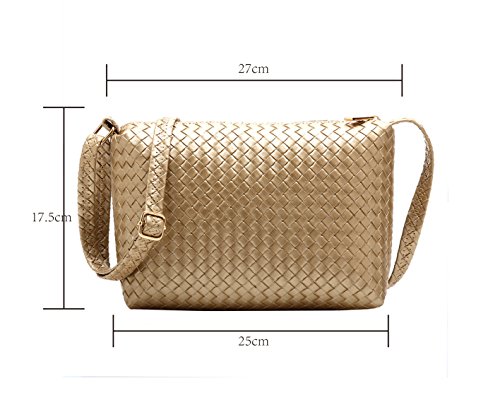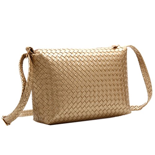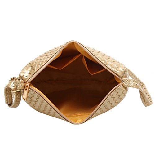 Yuanhong Women's Weaving Grain Shoulder Bag (Gold)