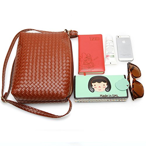 Ipad and other note¡¢phone¡¢sunglass etc no including .Made in China, hand-made, lightweight easy-took bag, it is mainly suitable for short trip with necessary items such as: mobile phone, wallet, notebook, sunglasses, etc. Colorful weaving PU, with 5L volume and limited weight of 5KG ?¡êThis women's shoulder satchel is made from lightly textured faux leather and accented with zippered pockets inside and out for easy-access storage of all your essentials. A top zipper closes the main compartment, while a flat-base bottom provides an upright structure. The Yuanhong Women's Weaving Grain Shoulder Bag has rolled handles for comfortable carrying over your arm or shoulder, while an adjustable crossbody strap detaches for another carrying option.