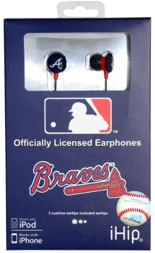 -. Title : iHip MLF10169ATL MLB Atlanta Braves P.R.Inted Ear Buds, Blue/Red