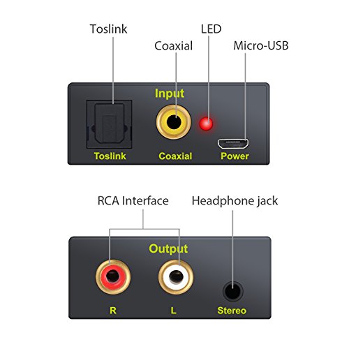 - 【DAC Converter】 It Converts Coaxial or Toslink Digital Audio Signals to Analog L/R Audio and Available for Connection to an External Device Such as an Amplifier via Standard RCA Jacks