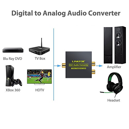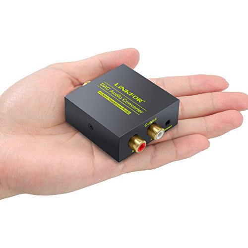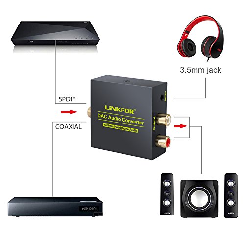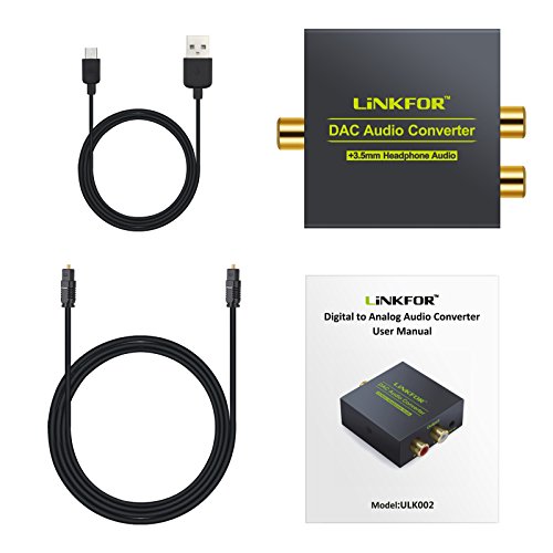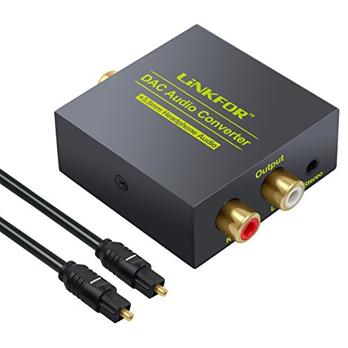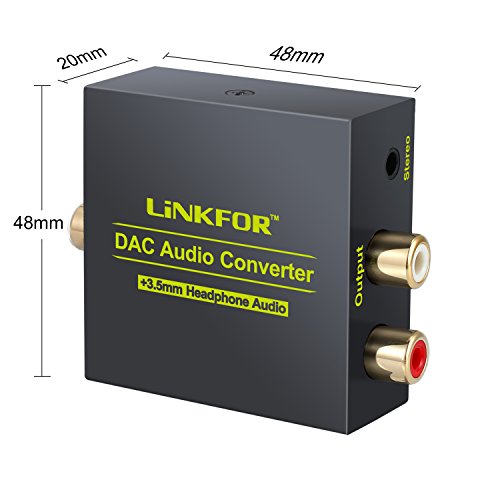 LiNKFOR DAC Digital to Analog Audio Converter Optical Coax to Analog RCA L/R Audio Adapter with Optical Cable 3.5mm Jack Output for HDTV Blu Ray DVD Sky HD XBox 360 TV Box