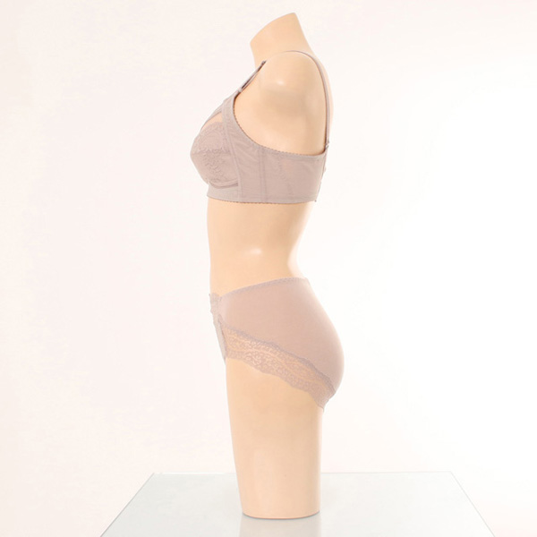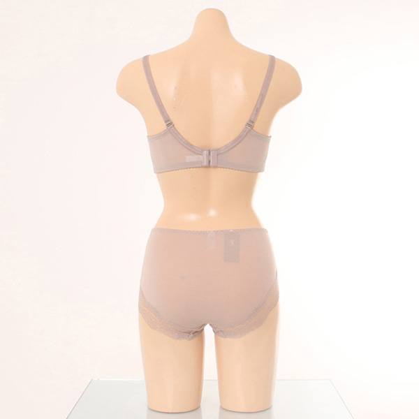엘레강스한 느낌의 노와이어 기능성제품입니다. 얇고 소프트한 직조패드가 들어간 노와이어 로 편안한 착용감이 우수한 제품입니다. 와이어가 없기때문에 와이어라인의 압박감이 없으면서 사이드부분에서 가슴을 잘 모아주기 때문에 실버층까 지 착용하기 좋은 제품입니다. 컵상변과 옆상변에 원단을 덧대어주는 설계를 통하여 가슴을 안정적이면서 충분히 감싸주는 기능이 있으며, 특히 날개를 넓게 설계하여 등에 있는 군살을 효과적으 로 압박해줍니다. 컵 둘레에 매쉬테이프를 사용하여 움직임이 편안하며, 통기성도 좋습니다.