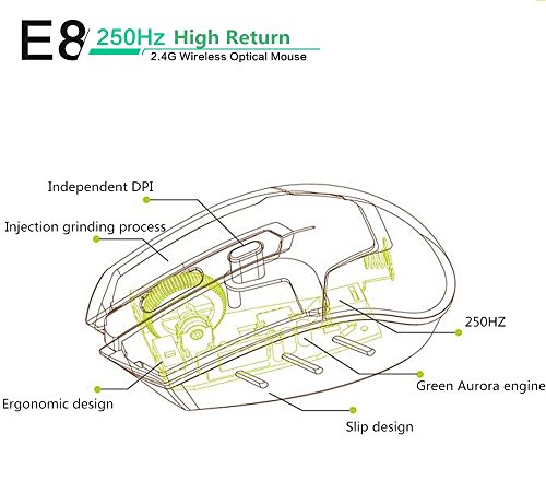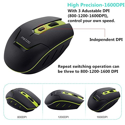 -. Feature : The 7th generation 2.4G wireless frequency-hopping technology, super anti-interference ability. / 250Hz high polling rate chipest result in fast date transmission. / Ergonomic design offers you great grab feeling and keep your hand comfortable even after long. / 3 Adjustable Response Levels: 800, 1200 and 1600 DPI levels let you adjust the mouse's responsiveness to suit certains games and other programmes. / Smooth, precise and affordable wireless optical 3-button mouse with nano receiver for laptop, desktop and netbook PCs.