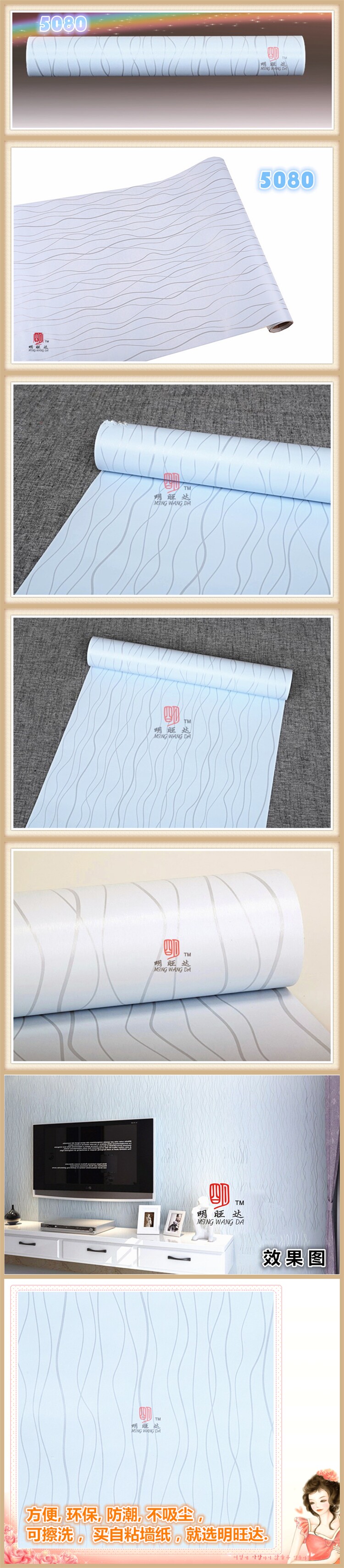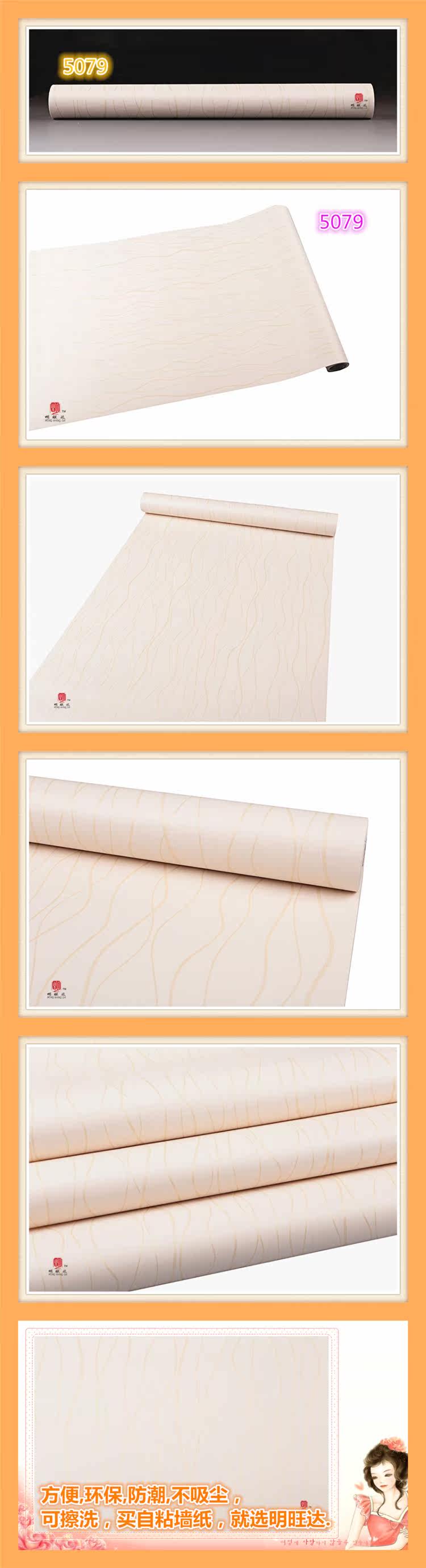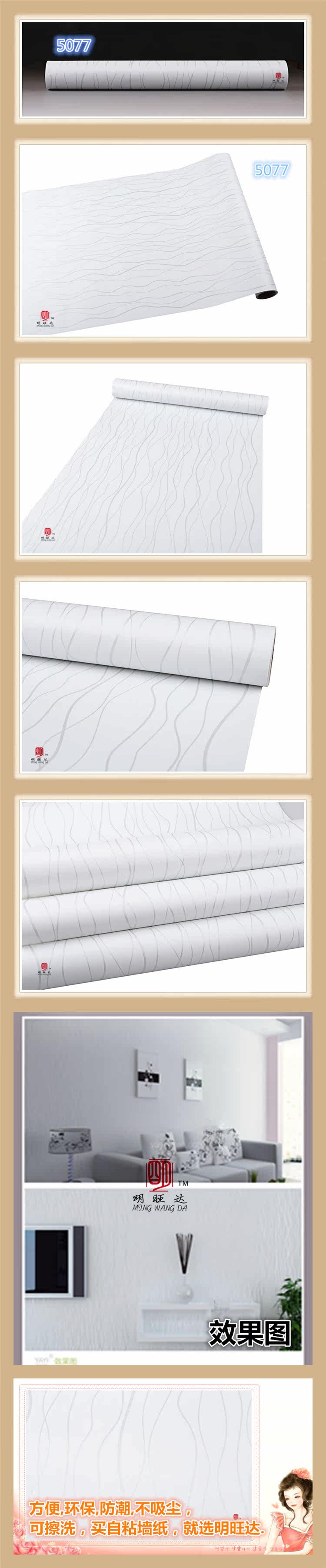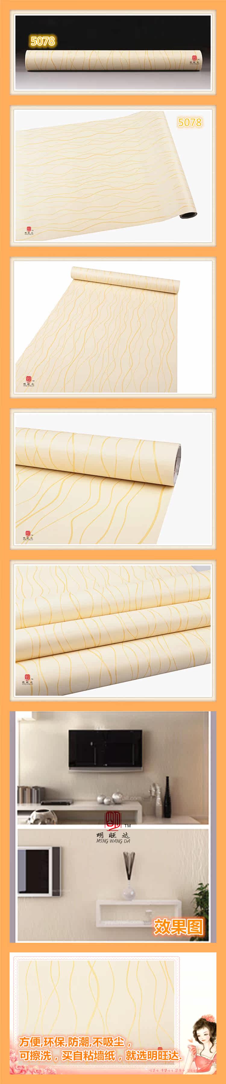 Material: P V C Material surface water can scrub Each roll width (m): 0.45 Roll length (m): 10 Denominated: Volume 1 Surface layer process: embossed Wallpaper Size: Other