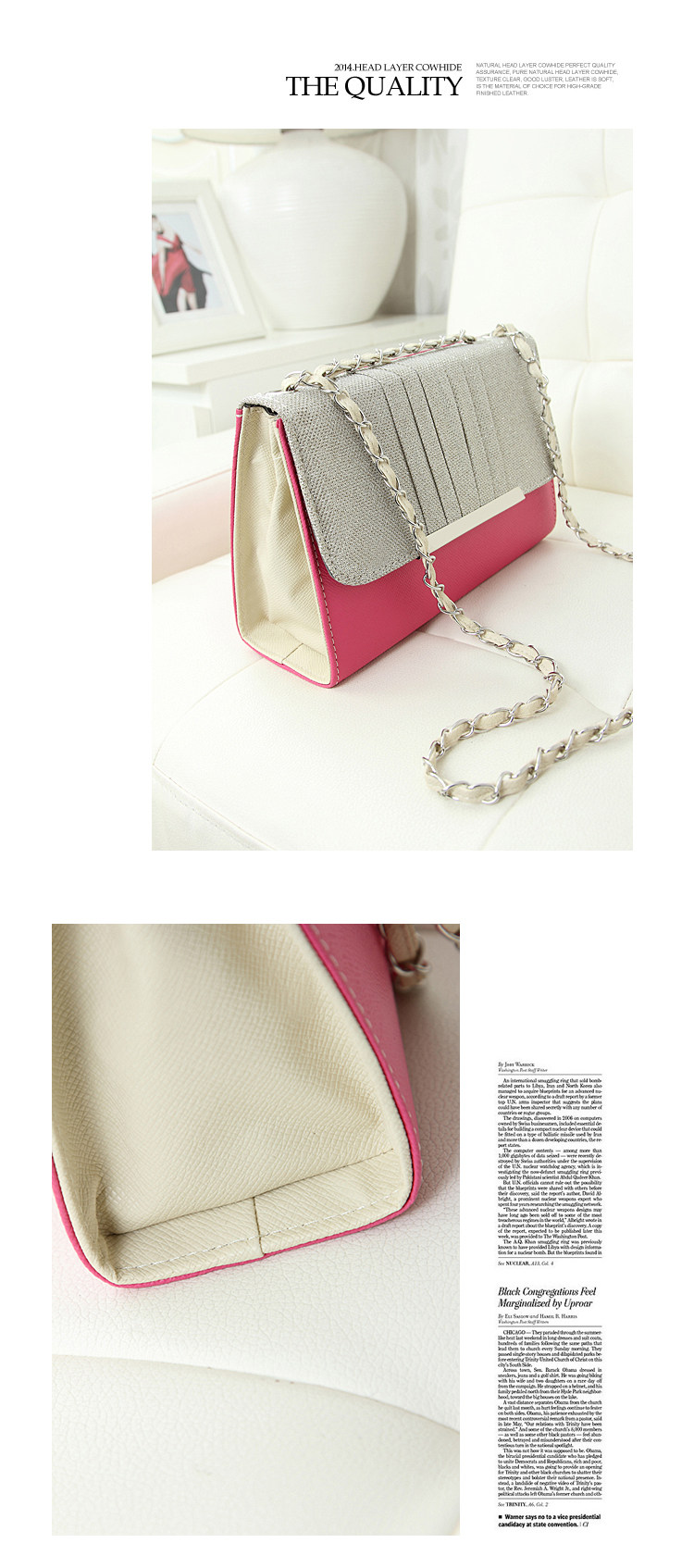 Bag dimensions: width: 26 cmheight of about: 16.5 cm, thickness: 9.5 cm, chain length: 135CM