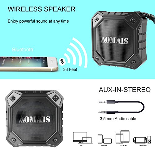 Waterproof IPX7 Floating: AOMAIS has designed and provided fully waterproof of highest incursion protection degree of IPX7 (IPX7-immersion up to 1 m for 30 minutes underwater).Some competitors may offer an IPX5 rating only at splash proof or light rain,not waterproof.Perfect for home,kitchen, bathroom,shower,camping,travel,hiking or by the poolside and beach,BBQ, boating,kayaking,party;its floating-function makes you no worry,even when you drop the AOMAIS OUTDOOR in your pool,lake,or river