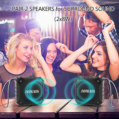 AOMAIS Ultra Portable Wireless Bluetooth Speakers with 8W Output Loud Sound,Waterproof IPX7 Floating,Stereo Pairing,for iPhone7/iPod/iPad/Samsung/Cell Phones/Tablets/PC/Laptop(Black)
