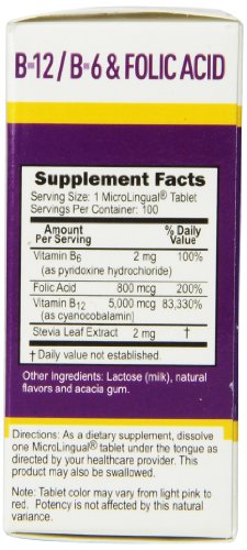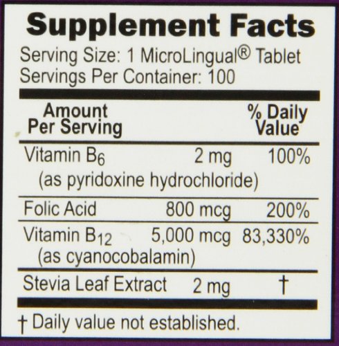 This products powerful combination of B12 , B 6 and folic acid works synergistically to support healthy heart function and provide essential nutrients for the cardiovascular system. Micro lingual tablets go to work fast, under the tongue.Feature