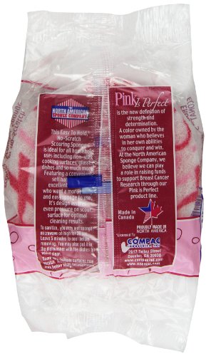 North American Sponge Co. 1ct PINK IS PERFECT Ergo Grip EcoNat Scouring Sponge - Soy Foam/Recycled Scour (Pack of 6)