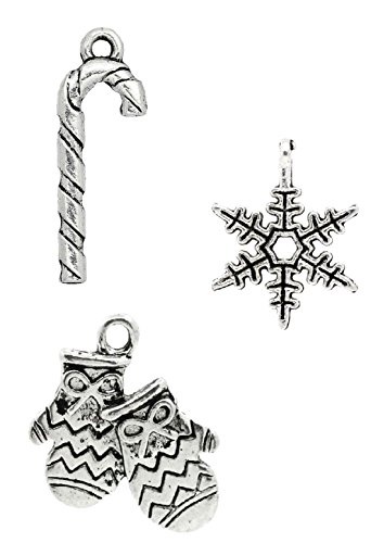 Christmas Charm Pendants 150 Pack, 50 of each (Candy Cane, Mittens, Snowflake)