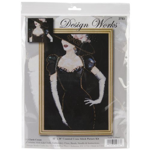 Tobin 14 Count Lady in Black Counted Cross Stitch Kit, 12 by 20-Inch