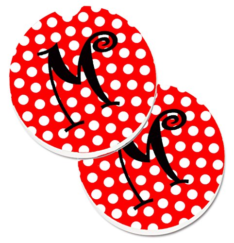 Caroline's Treasures Letter M Initial Monogram Red black Polka Dots Set of 2 Cup Holder Car Coasters CJ1012-MCARC, 2.56, Multicolor