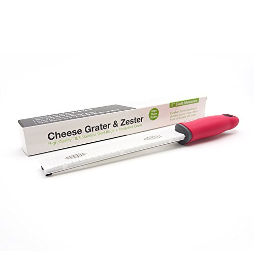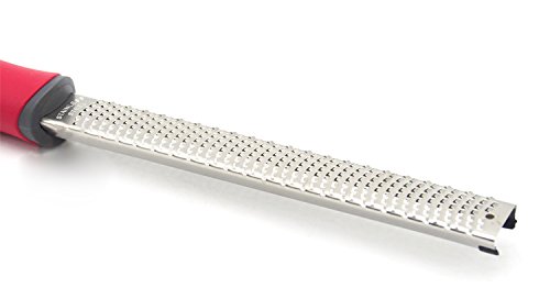 - [SEMI-SOFT,ERGONOMICALLY DESIGNED FOR OPTIMAL COMFORT]This Grater&Zester is made of food grade 18/8 stainless steel and non-slip silicone rubber.