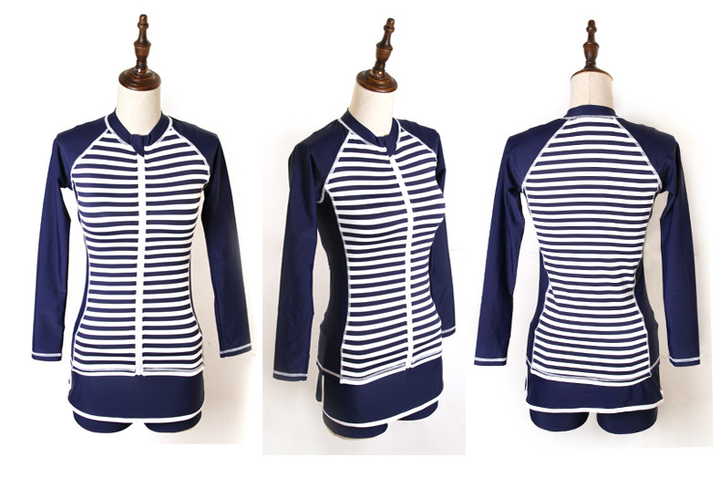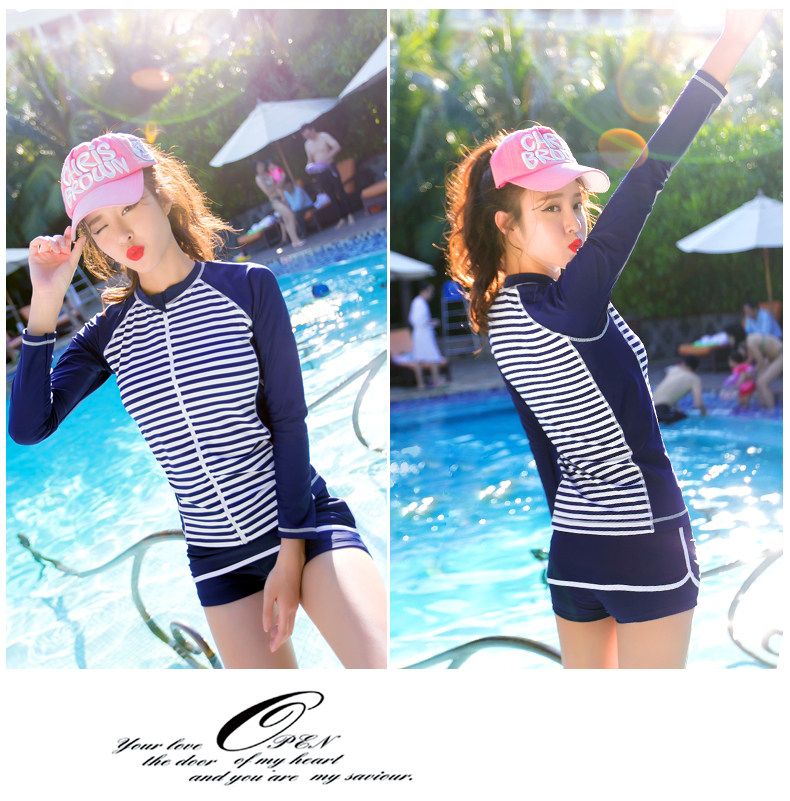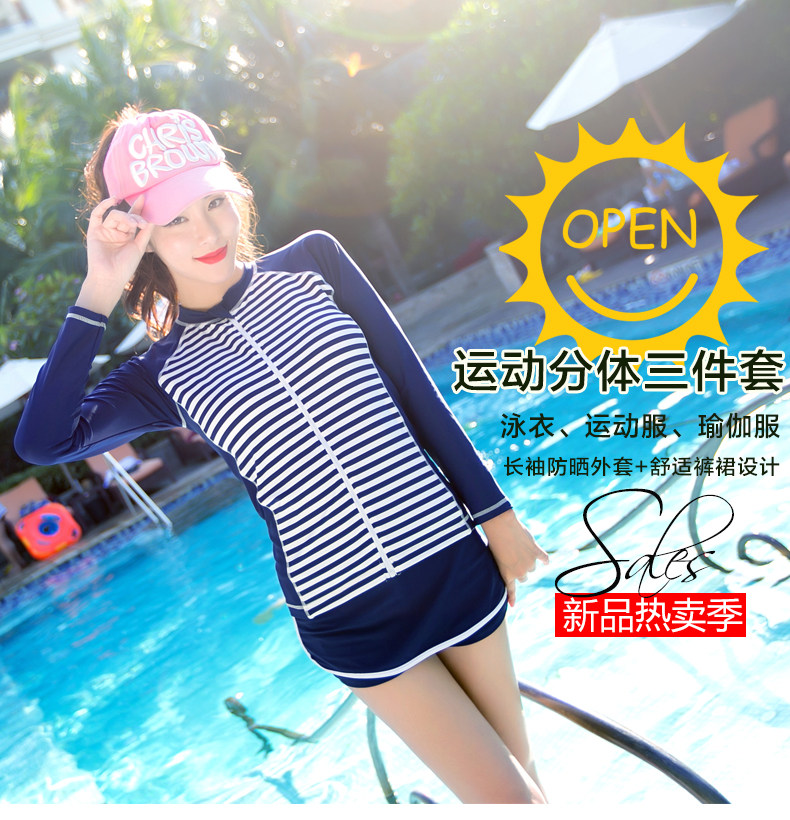 分体泳衣三件套女士长袖防晒平角保守多功能运动套装游泳衣