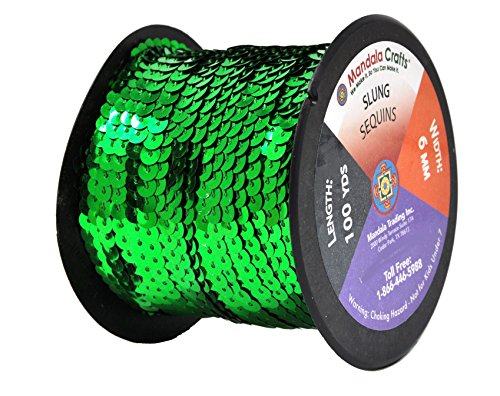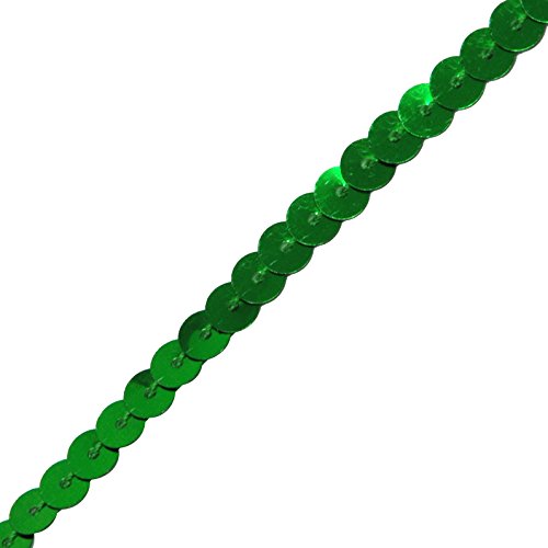 Mandala Crafts 6mm Flat Gold Silver Black Red Blue Trim Paillette Spangle Sequins String Ribbon Roll, 100 Yards (One Regular Roll 100 Yards, Green)