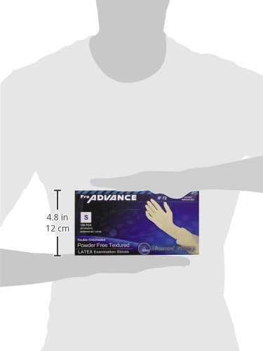 Product Description Pro advance IF72 double chlorinated powder free textured latex examination gloves. Excellent resistant from moisture and chemicals with good tactile sensitivity and dexterity. One time use only. 0