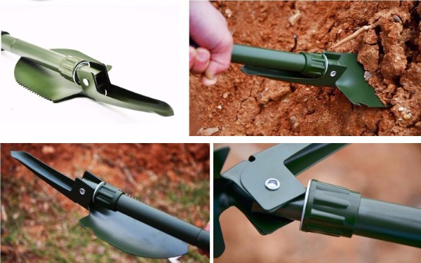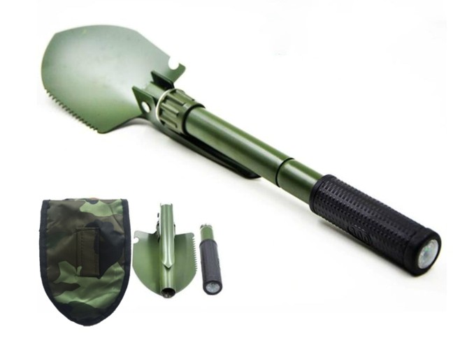 折りたたみ式 シャベル マルチ スコップ ( ショベル ・ ピッケル ・ のこぎり ・ 栓抜き ・ 穴開け) 携帯 ポ ctr-b97【1~2日発送】