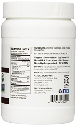 -. Title : Nutiva Organic Coconut Oil, Virgin, 29 Ounce