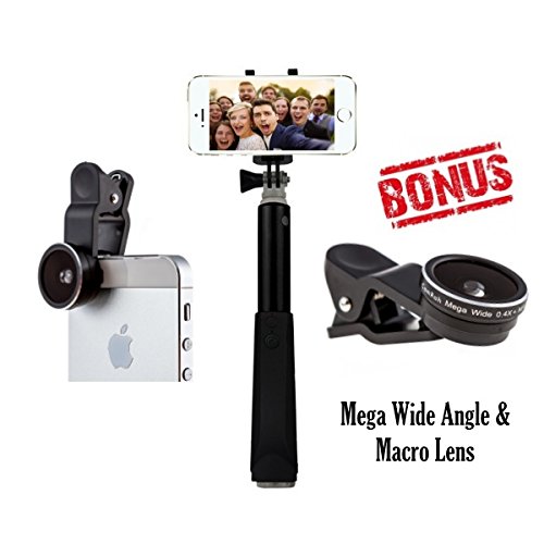 Title : Bluetooth Selfie Stick with Mega Wide iPhone Camera Lens Wide Angle and Macro Combo