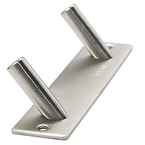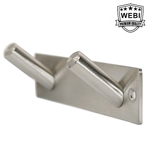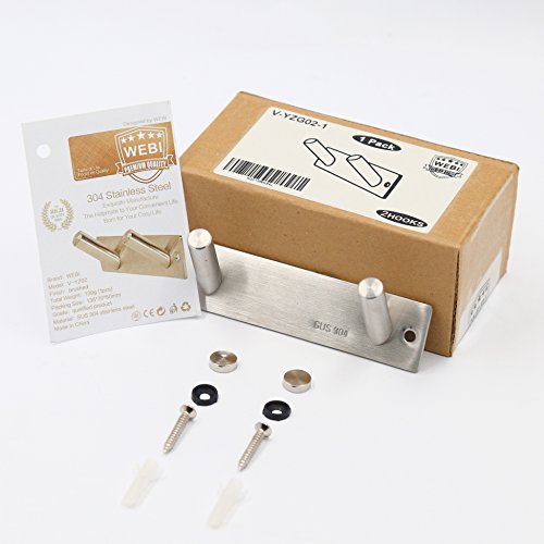 Bath Towel Hooks, WEBI V SUS 304 Heavy Duty 2-hook Hat Coat Hook Robe Closet Clothes Hanger Rail Garment Racks Holder Home Storage & Organization, Screw-in Wall Mountable, Brushed Nickel, V-YZG02-1