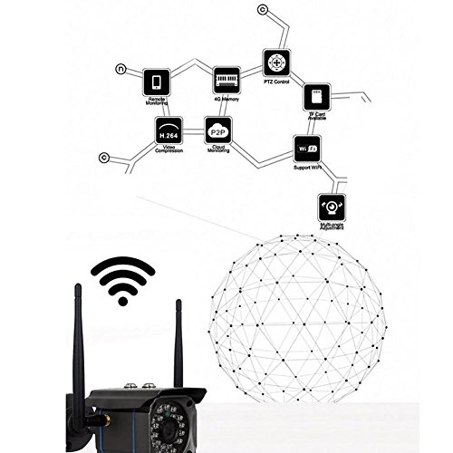 -. Feature : Full 720p HD video camera -you can see more clear and detailed image day and night with this high-definition digital camera. Weatherproof- The camera is IP65 weather-proof so that it can be installed both indoors and outdoors to protect your house no matter raining or snowing. / Easy and Quick Setup - WiFi setup. All setup are via Phone APP / Remote view by Mobile device including Android, iPhone, iPad and PC (CMS & Browser) / Infrared night vision light: through photo resistor sensor switch, LED lights night vision 10 meters, (IR-CUT automatic switching) / Local storage: support 64GB Micro SD card(NOT INCLUDED), support 24-hour video recording