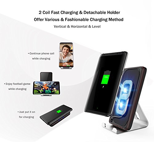 【2-Coil】 Features two-fast charging coils, this wireless charger offers no blind charging pot and makes charging simpler. Notice:More faster and quality, we strongly recommend using a 2A/9V adapter for the best results, NOT using power source from computer, because the output from computer is only 500-800mA.