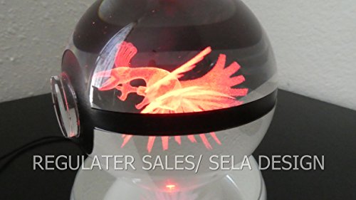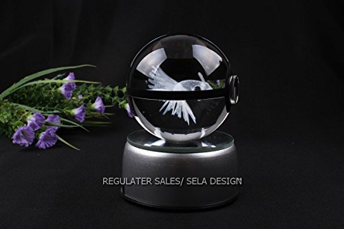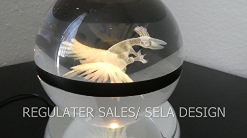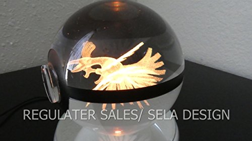 Sela Design. Multiple Designs Pokemon Go inspired Laser K9 crystal Engraved-LED rotating base. Base changes color toy nightlight lamp (Ho-Oh)