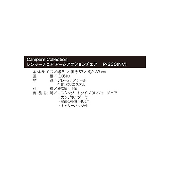 Campers Collection 갼파즈코레쿠숀 암 액션 체어 네이비 P-230(NV)