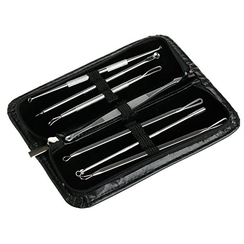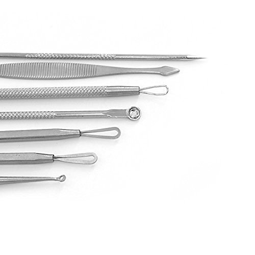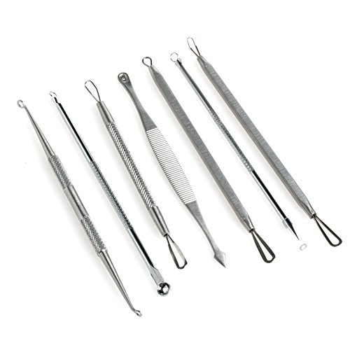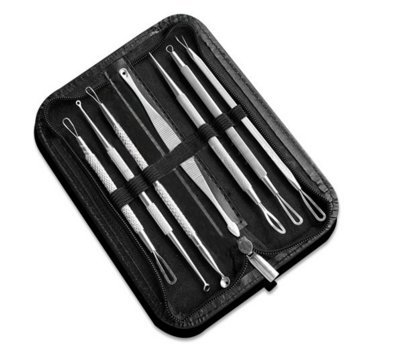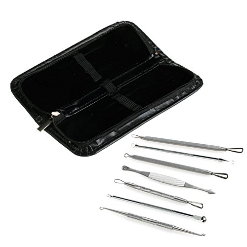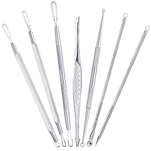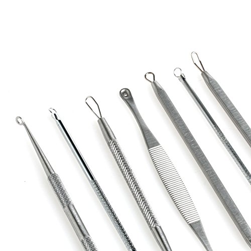 The variety of tools makes it easier to reach those hard-to-get spots and remove different sizes of acnes, blackheads, pimples, comedones, and other facial impurities without allergic reactions. The set contains 7 blackhead extractors