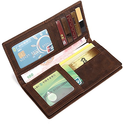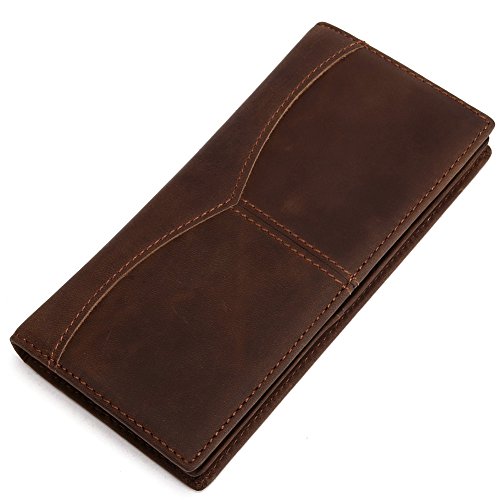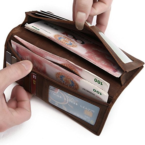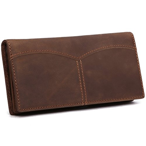 -. Title : Elfish Men's Genuine Crazy Horse Leather Long Bifold Wallet Brown