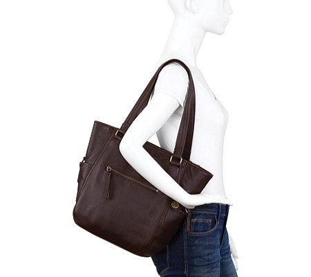 Product DescriptionNorth south leather tote with exterior pockets0