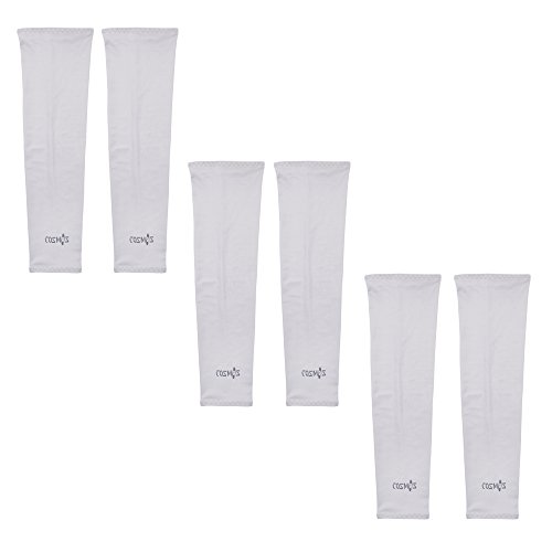 Cosmos 3 Pairs White Color UV Protection Cooler Arm Sleeves for Bike Cycling/Hiking/Golf