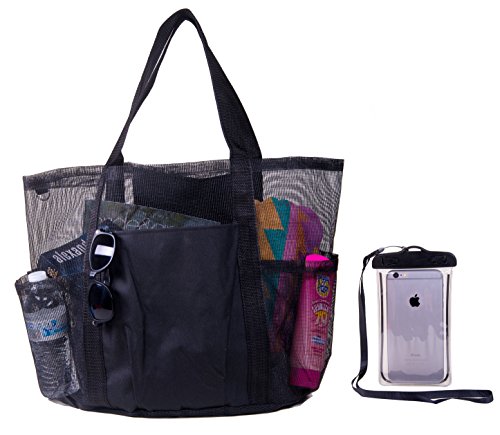 Super Large Family Mesh Beach Tote Bag w/ Waterproof Phone Case