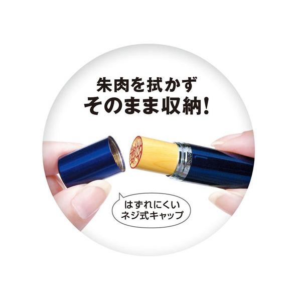 | なつ印後印鑑に付着した朱肉を拭き取らずにそのまま収納して携帯することができる印鑑ケースです。カバンの中でも安心して携帯できるよう、ネジ式キャップを採用しています。 |