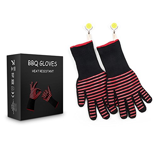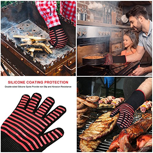 Woochy BBQ Oven Gloves Grilling Cooking Mitts Extremely Heat Resistant up to 932°F Premium Insulated & Silicone Lined Aramid Fiber