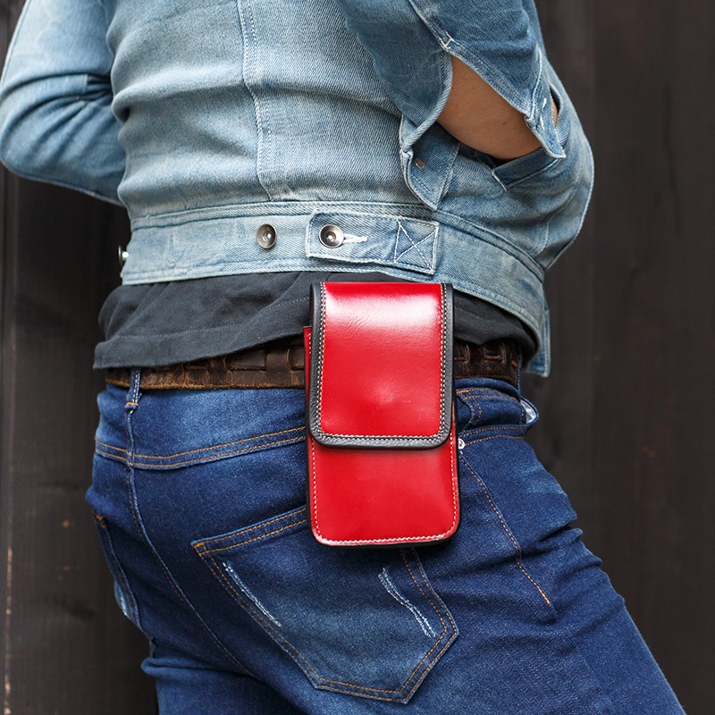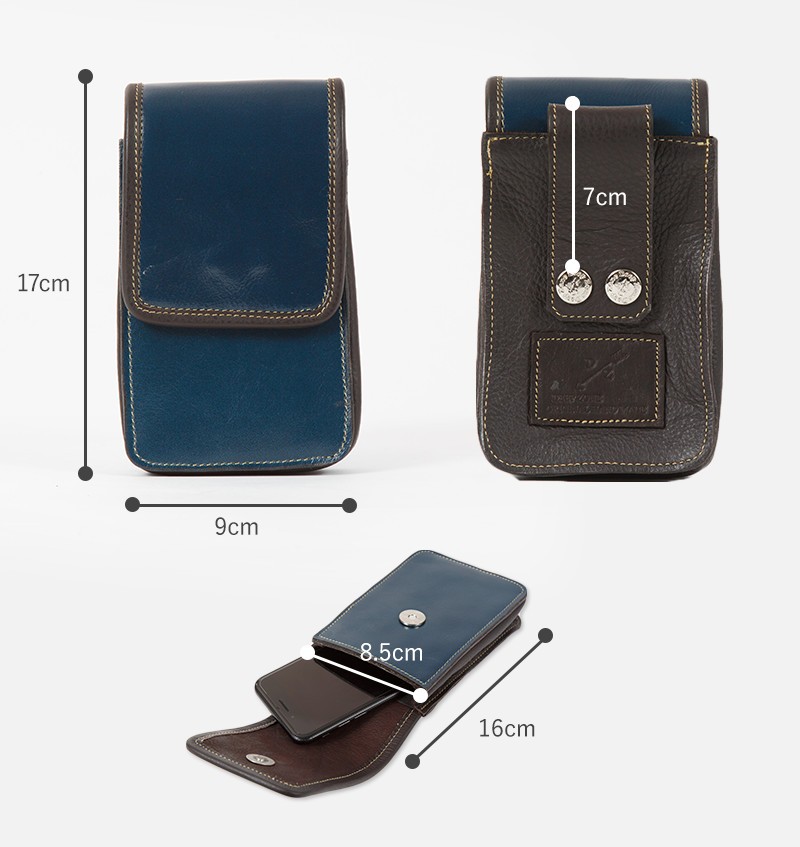 一流革職人がハンドメイドで仕上げられた、本革 レザーヒップバッグ ウエストバッグ。上質の牛革をイタリアンレザーの加工で仕上げております。見た目の美しさだけでなく、使用したときの機能性にもこだわっております。フラップポケット型を採用し、ワンタッチで開閉できる、マグネットボタンを取り付けたことで、ストレスなく取り出すことができます。【素材】牛革  【サイズ】外寸:高さ17cm × 幅9cm × マチ3cm内寸:高さ16cm × 幅8.5cmベルトループ幅 7cm【カラー】レッド・ブルー